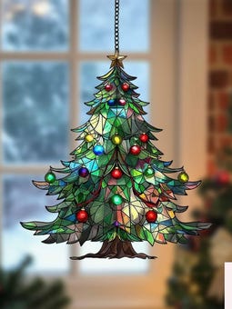 Classic Tree Christmas Acrylic Suncatcher: Cozy Christmas Window Display