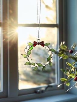 Real Stained Glass Mistletoe Wreath Suncatcher – Handmade Holiday Window Hanging Christmas Gift , Xmas 2025.