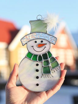 Stained Glass Snowman Suncatcher | Handmade Christmas Ornament | Unique Holiday Gift | Winter Window Hanging | Festive Snowman Decor