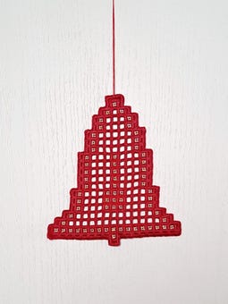 Vintage handmade hardanger tree ornament — handmade hardanger Christmas bell ornament — 7.5×7 inches / 19×18 cm