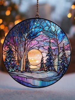 Winter Land Stained Glass SunCatcher, Winter Season, Christmas Tree Decor, Snow Scene Glass Window Hanging for Christmas